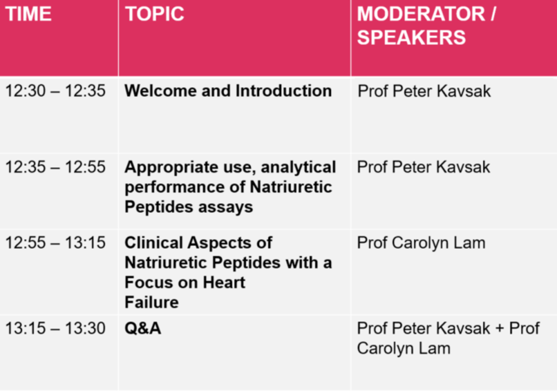 심부전은 고령 집단에서 건강과 경제에 부담을 가중시키고 있습니다. 증상이 비특이적이고 심부전과 다른 문제를 구별하는 데 도움이 되지 않는 경우가 많습니다. B형 나트륨이뇨 펩티드(BNP) 및 N-말단 프로-BNP(NT-proBNP) 모두가 심부전 진단과 예후 결정에 도움이 됩니다. 이 웨비나에서는 나트륨이뇨 펩티드(NP) 분석의 적절한 사용에 대한 IFCC 권장사항, 분석 성능, 임상시험에서의 간극에 대해 알아보겠습니다.